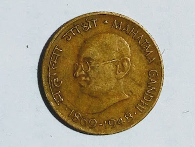 सिक्के में एक ओर बीच में गांधीजी का photo बना हुआ है ,और उसके नीचे 1869 से 1948 लिखा है .इसके इस side के किनारे पर हिंदी में महात्मा गांधी लिखा है .और दूसरी तरफ इंग्लिश में Mahatma Gandhi लिखा ह, इसके ठीक ऊपरी हिस्से में एक Star का mark भी बना है इस सिक्के को पलटने पर दूसरी ओर coin के बिल्कुल बीच में अशोक स्तंभ बना हुआ है ,और इसके नीचे अंकों में -20-का अंक बना है इसकी एक side की साइड में देवनागरी हिंदी में भारत पैसे लिखा गया है और दूसरी साइड के किनारे पर में अंग्रेजी me- india paise लिखा हुआ है!मौलाना अब्दुल कलाम आजाद के चित्र वाला ₹5.रुपये का पुराना सिक्का- कॉइन कलेक्शन के लिए